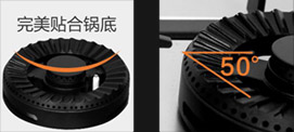 火焰貼合鍋底,使燃燒的熱量更集中于鍋底,