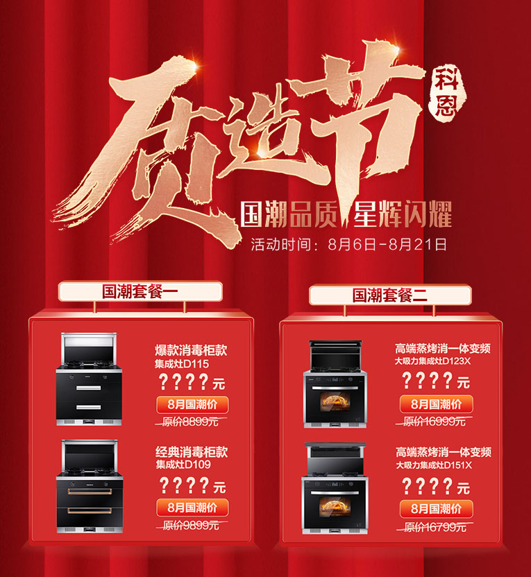 集成灶十大品牌、廚電行業(yè)十大品牌科恩八月質(zhì)造節(jié)大型全國促銷活動(dòng)強(qiáng)勢(shì)來襲,國潮品質(zhì),星輝閃耀,絕對(duì)給你想不到的洪荒之“利”!