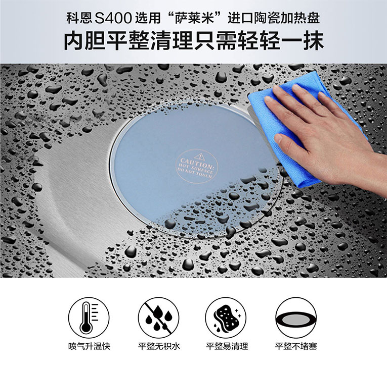 作為行業(yè)翹楚,集成灶十大品牌、廚電行業(yè)十大品牌科恩集成灶深耕行業(yè)數(shù)年,憑借對(duì)廚房痛點(diǎn)的敏銳度與洞察力,潛心鉆研新品及新技術(shù),其中近期發(fā)布的科恩S400智能蒸烤消一體集成灶更是極大的滿足了市場(chǎng)的需求。在“蒸”方面,S400集成灶擁有了不起的“蒸”功夫,從物理角度講,100℃的水蒸氣比100℃的開(kāi)水溫度更高。而130℃的水蒸氣比100℃的肯定具有更多的能量。想要蒸出可口美味的菜,蒸箱就需要滿足“溫度高、蒸汽足”的條件,傳統(tǒng)蒸箱最高溫度只能達(dá)到100℃,很難蒸出理想效果。集成灶十大品牌、廚電行業(yè)十大品牌科恩S400智能蒸烤消一體集成灶采用噴氣式4D立體蒸技術(shù),底部陶瓷加熱盤(pán)加右側(cè)雙孔蒸汽噴射,蒸汽自外向內(nèi),將食物層層包裹,熱蒸合力,全方位滲透食材,短時(shí)間內(nèi)食物即可快速熟透、酥糯。另外,S400集成灶還擁有頂部微晶玻璃體發(fā)熱,頂部不滴水,杜絕冷凝水,清潔更輕松。