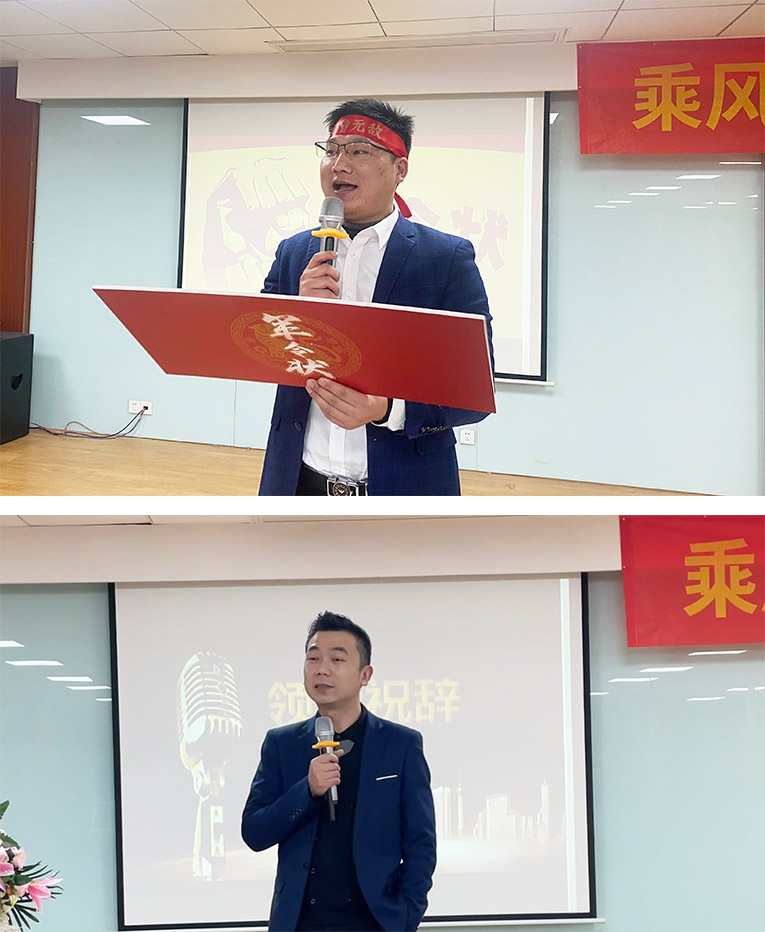 授旗宣誓儀式舉行,氣勢(shì)恢宏、鏗鏘有力的響聲、永不言敗的決心、異口同聲的宣誓詞回響在會(huì)議大廳,“全力以赴,誓必達(dá)成”!