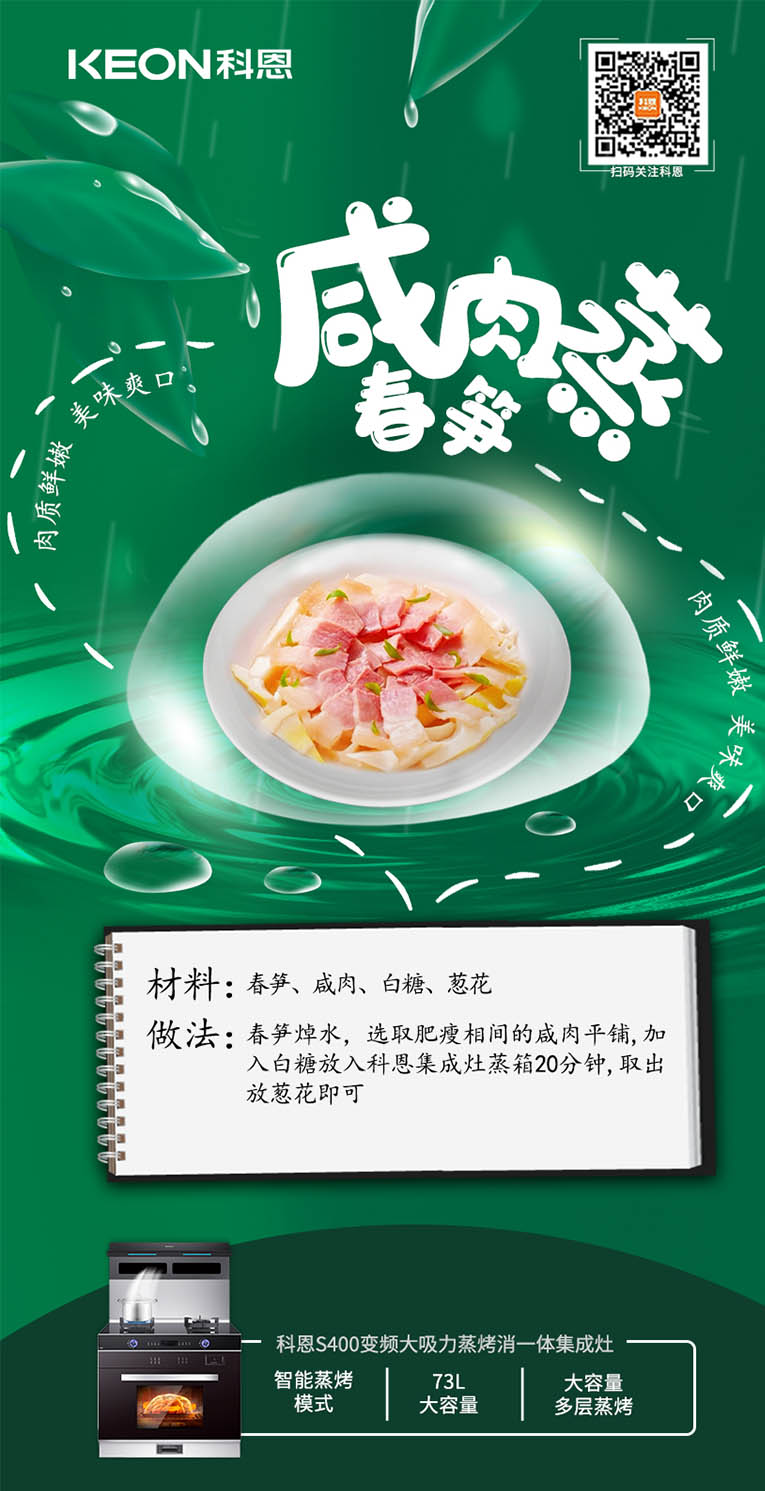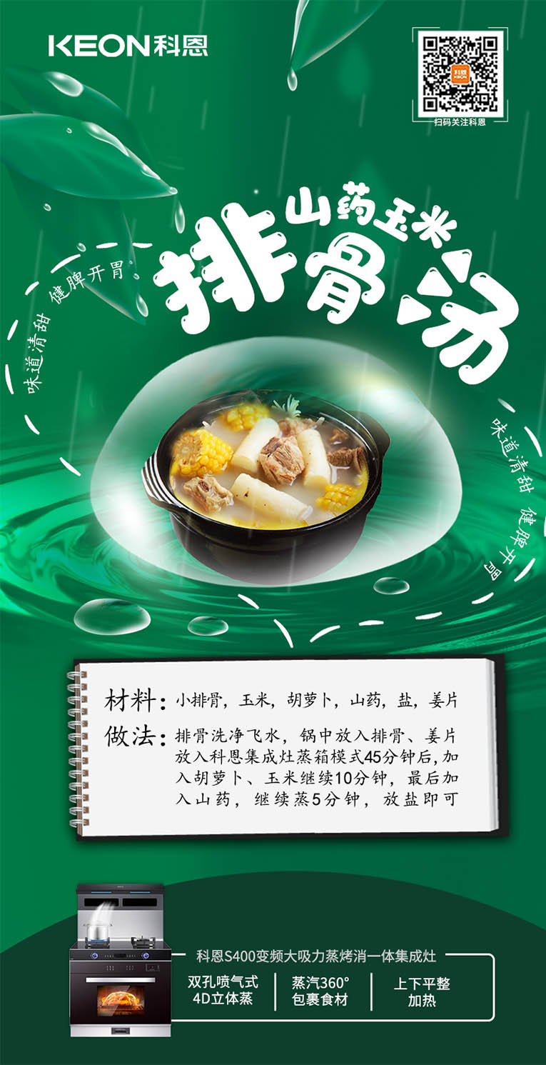 中醫(yī)認為肝主生發(fā),故春季肝氣旺盛,肝木易克脾土,養(yǎng)生不當(dāng)容易損傷脾臟,從而導(dǎo)致脾胃功能的下降。雨水時節(jié)空氣濕潤,又不燥熱,正是養(yǎng)生的好時機,當(dāng)然首先要調(diào)養(yǎng)脾胃。集成灶十大品牌、廚電行業(yè)十大品牌科恩集成灶多項全能,蒸煮、煲湯、煎炸、爆炒樣樣精通,輕松應(yīng)對您所需的烹飪方式,20m3/min大風(fēng)量,720Pa大風(fēng)壓,只留美味,不留油煙。