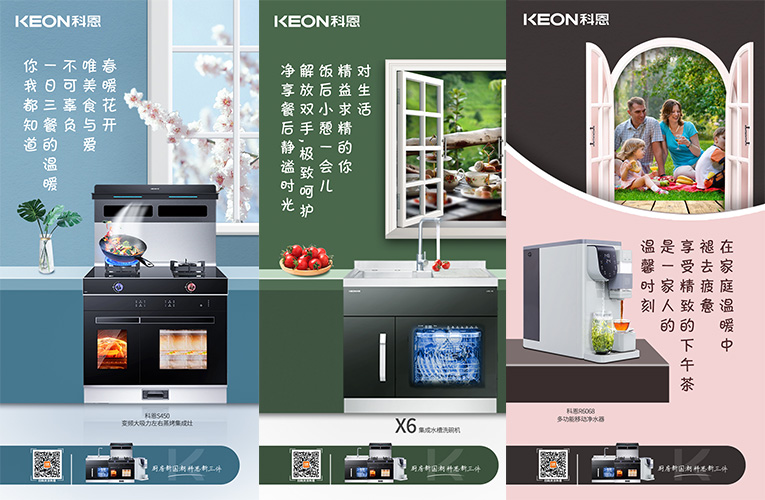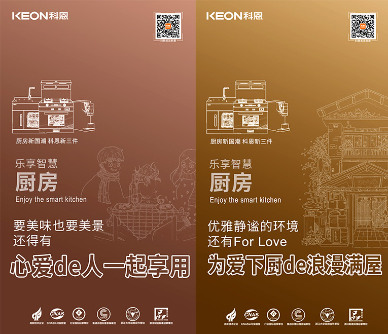 國潮正當時,隨著國貨的崛起,消費者更加開始關(guān)注高端新國貨!科恩集成灶為千萬家庭打造樂享智慧廚房空間,創(chuàng)新設(shè)計、高端品質(zhì)、優(yōu)良服務(wù)、優(yōu)質(zhì)體驗贏得了用戶的高度認可。順應(yīng)“國潮”趨勢,提煉“新國貨新潮牌”理念,結(jié)合“廚房新國潮,科恩新三件”,以滿足現(xiàn)代年輕群體對國貨的審美與品質(zhì)認知,以匠心科技實現(xiàn)現(xiàn)代廚房功能需求。