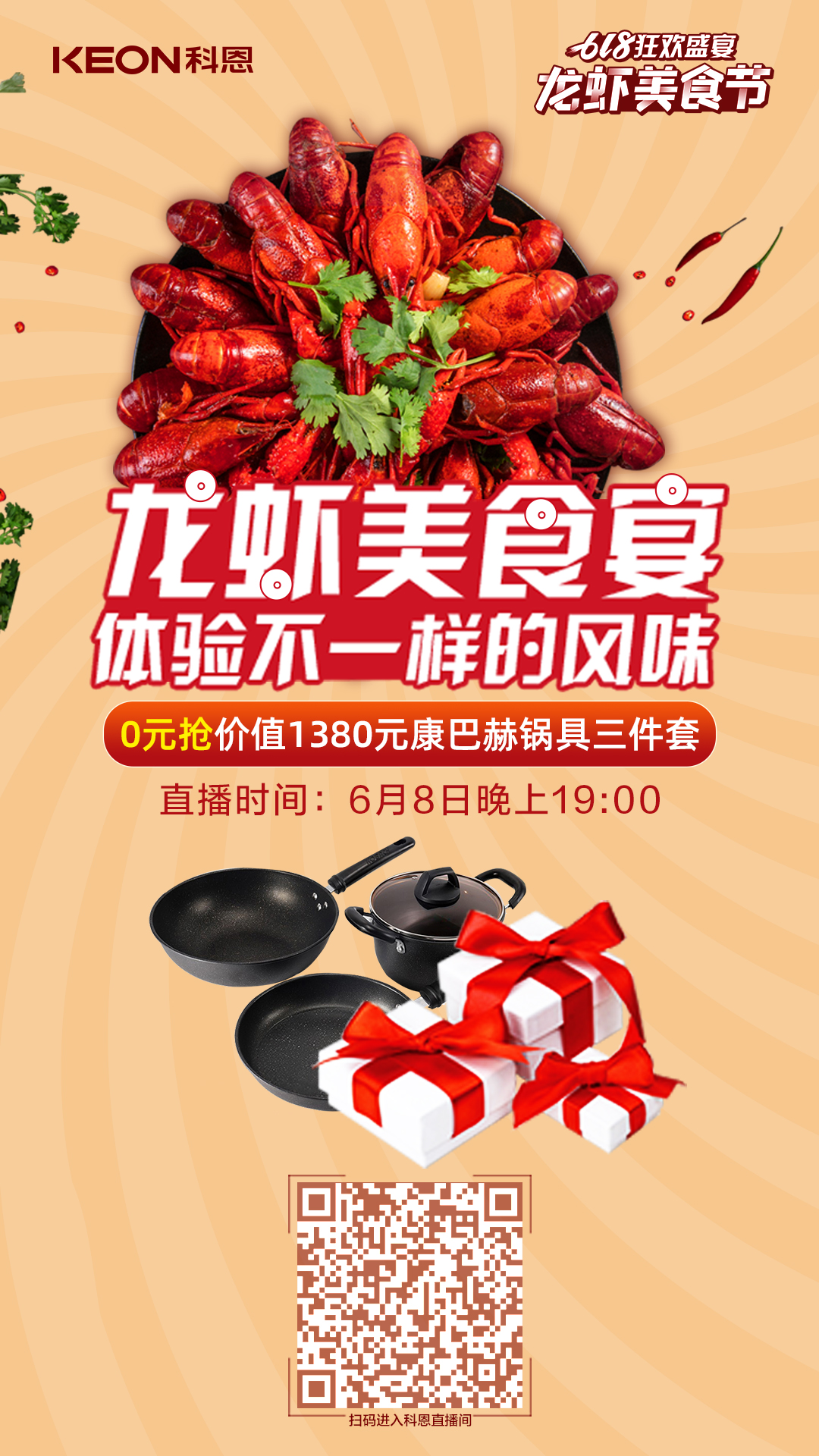 TA來了!TA來了!TA來了!618狂歡盛宴科恩龍蝦美食節(jié)——龍蝦美食宴線上直播終于來了,TA帶著傳統(tǒng)和創(chuàng)新的美味來了,TA帶著誠意滿滿的福利來了,6月8日19點(diǎn),來科恩直播間,我家的科粉,我來寵?。?!