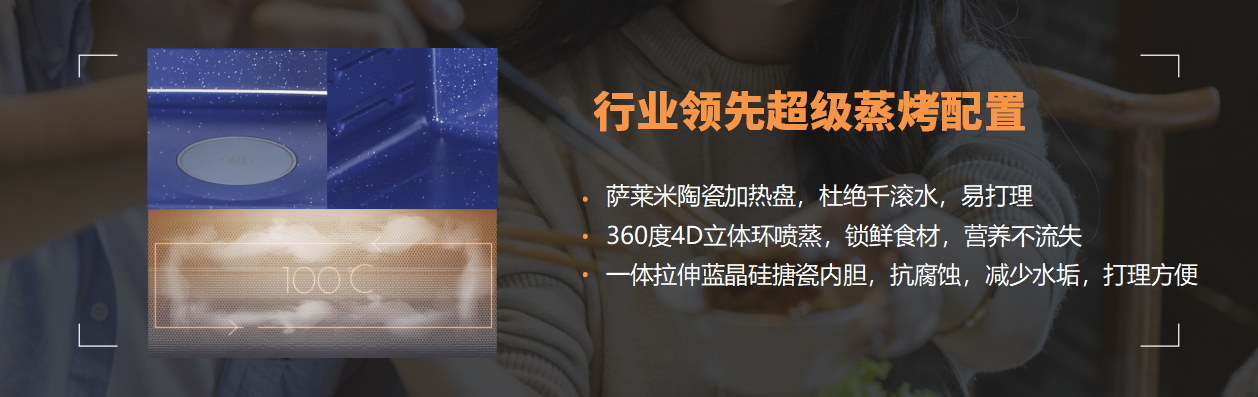C260蒸烤消炸四合一集成灶不僅在烹飪功能上極為豐富和全面,其箱體內(nèi)膽材質(zhì)也極為考究,采用一體拉伸藍晶硅搪瓷內(nèi)膽,抗腐蝕,減少水垢,經(jīng)久耐用好打理,蒸烤結(jié)束后,殘留的油污、水漬皆可輕松擦除,大大提高用戶的清潔便利度,其底部為薩萊米陶瓷加熱盤結(jié)構(gòu),無凹陷無縫隙不易積水,抹布一擦即凈,相比傳統(tǒng)下沉式加熱盤,可有效杜絕千滾水,大大縮短蒸制時間,節(jié)能同時仍能確保充足的蒸汽發(fā)生量。