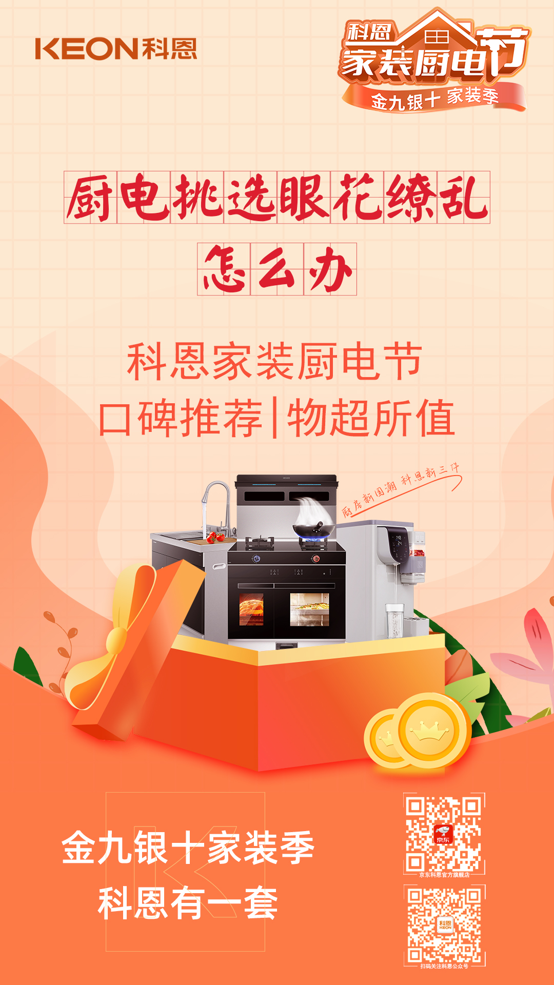 金九銀十正是家裝好時節(jié),很多家庭會借此大好時機選購廚電產(chǎn)品打造心目中的理想廚房,市面上林林總總的電器那么多,與其精打細算、篩選比較大半天,不如前往全國科恩電器門店挑選一套稱心如意的廚電產(chǎn)品,實現(xiàn)省錢、舒心雙豐收。金九銀十家裝季——科恩家裝廚電節(jié)大促活動正在火熱進行中,1元特權卡,樂享六喜禮,口碑廚電好物,超值推薦,爆款廚電好物任你挑選,限時福利,還不抓緊入手一波!