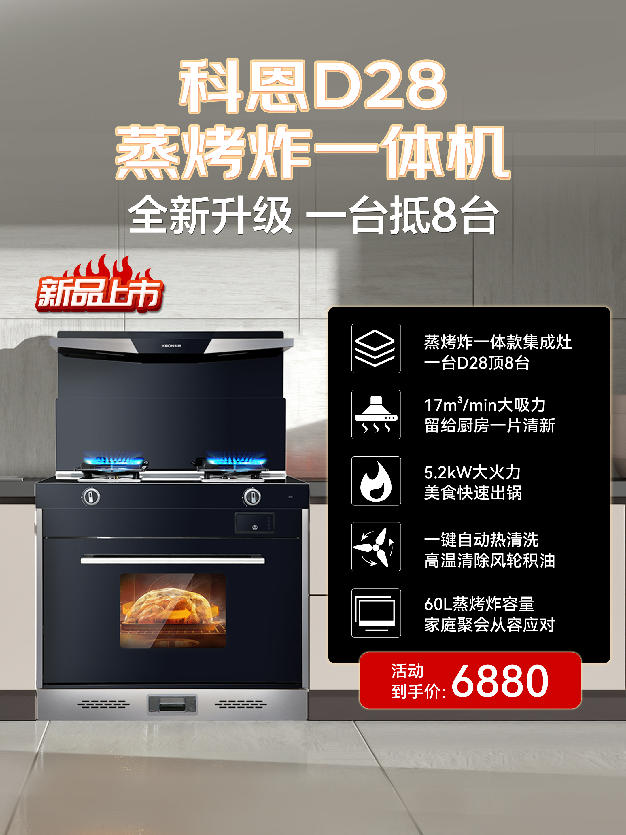 D28蒸烤炸集成灶超級(jí)秒殺:下單即贈(zèng)康巴赫套鍋;咨詢客服送無(wú)菌菜板!