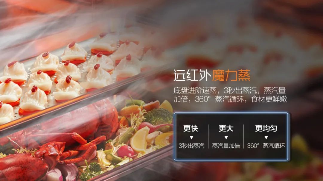 燒烤油炸固然美味,偶爾也需要來(lái)點(diǎn)養(yǎng)生蒸菜!A3系列采用底盤進(jìn)階速蒸,3秒出蒸汽,蒸汽量加倍,360°蒸汽循環(huán),蒸的更美味!