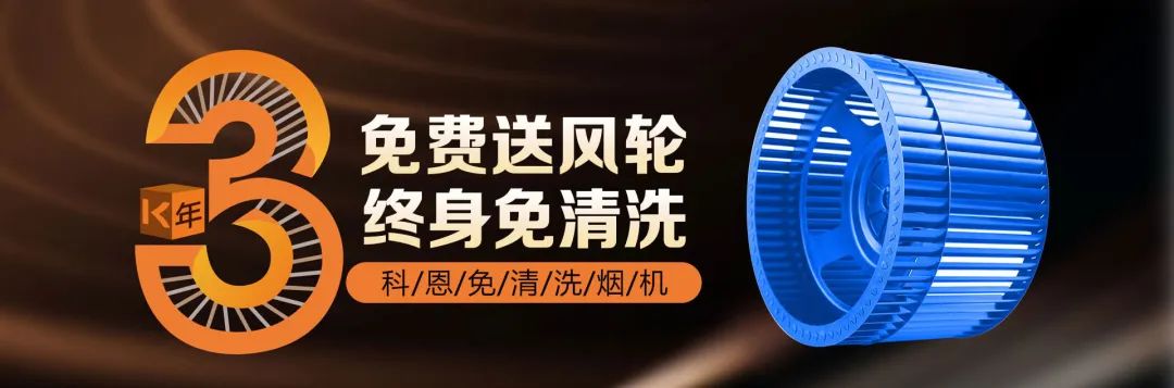 科恩電器行業(yè)率先提出3年免費送風輪服務,徹底解決殘余油脂油污問題,真正實現(xiàn)煙機終身免清洗!