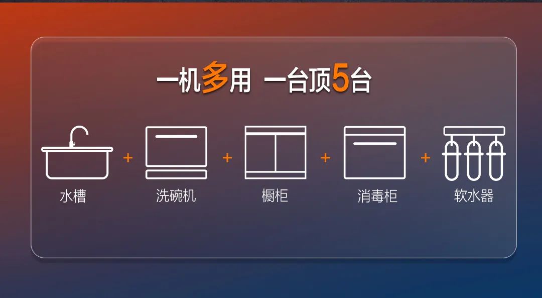 一臺集成水槽洗碗機,相當于:水槽+洗碗機+櫥柜+消毒柜+軟水機!一平方實現(xiàn)解放清洗自由,解放雙手就是現(xiàn)在!