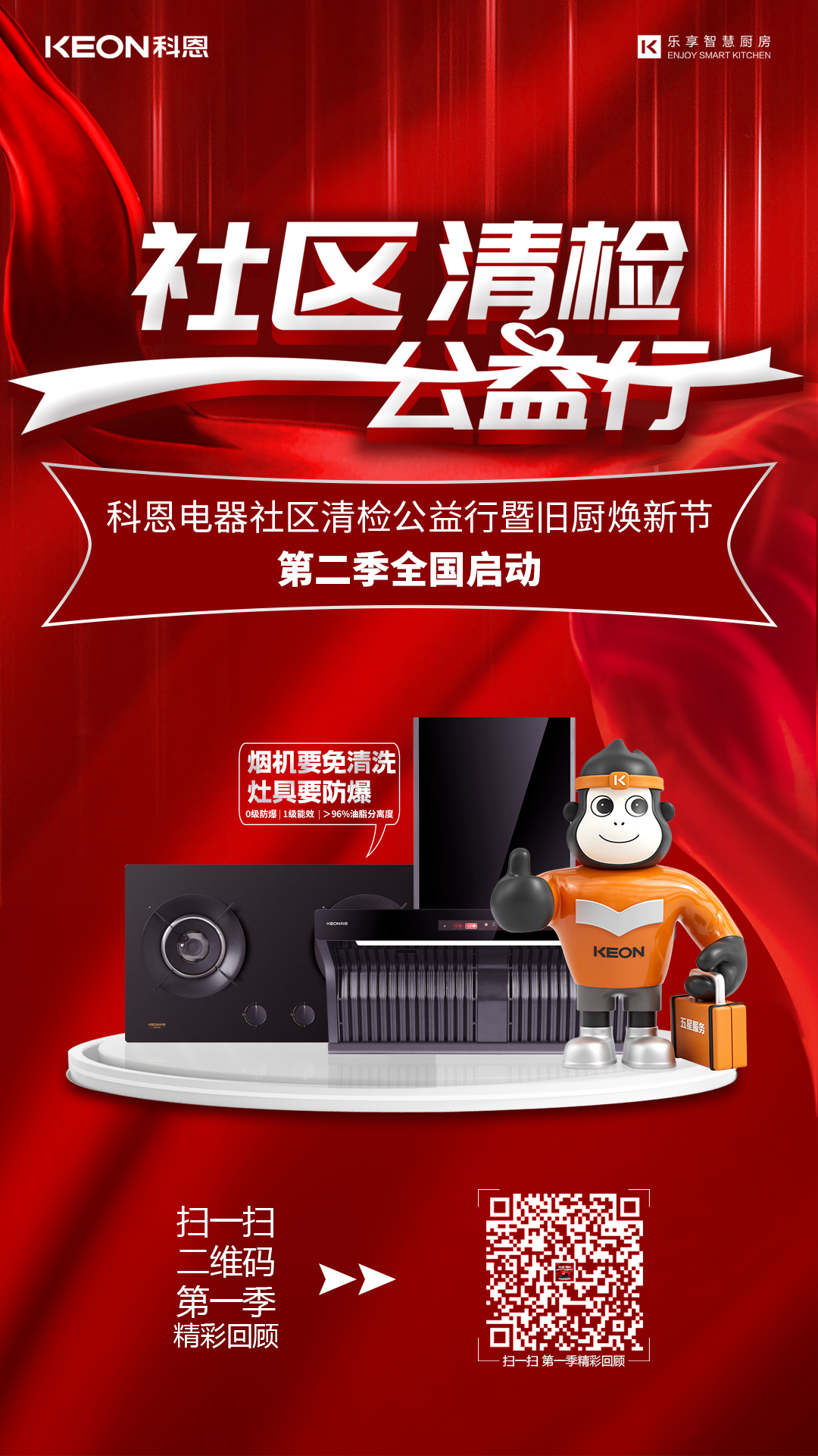 2023年,廚電行業(yè)面臨嚴(yán)酷挑戰(zhàn),怎么結(jié)合當(dāng)下市場發(fā)展情況撬動新增量是企業(yè)需要思考的問題。科恩緊跟國家政策,深入開展家電以舊換新政策,以“社區(qū)清檢公益行”為主題深入千家萬戶。
