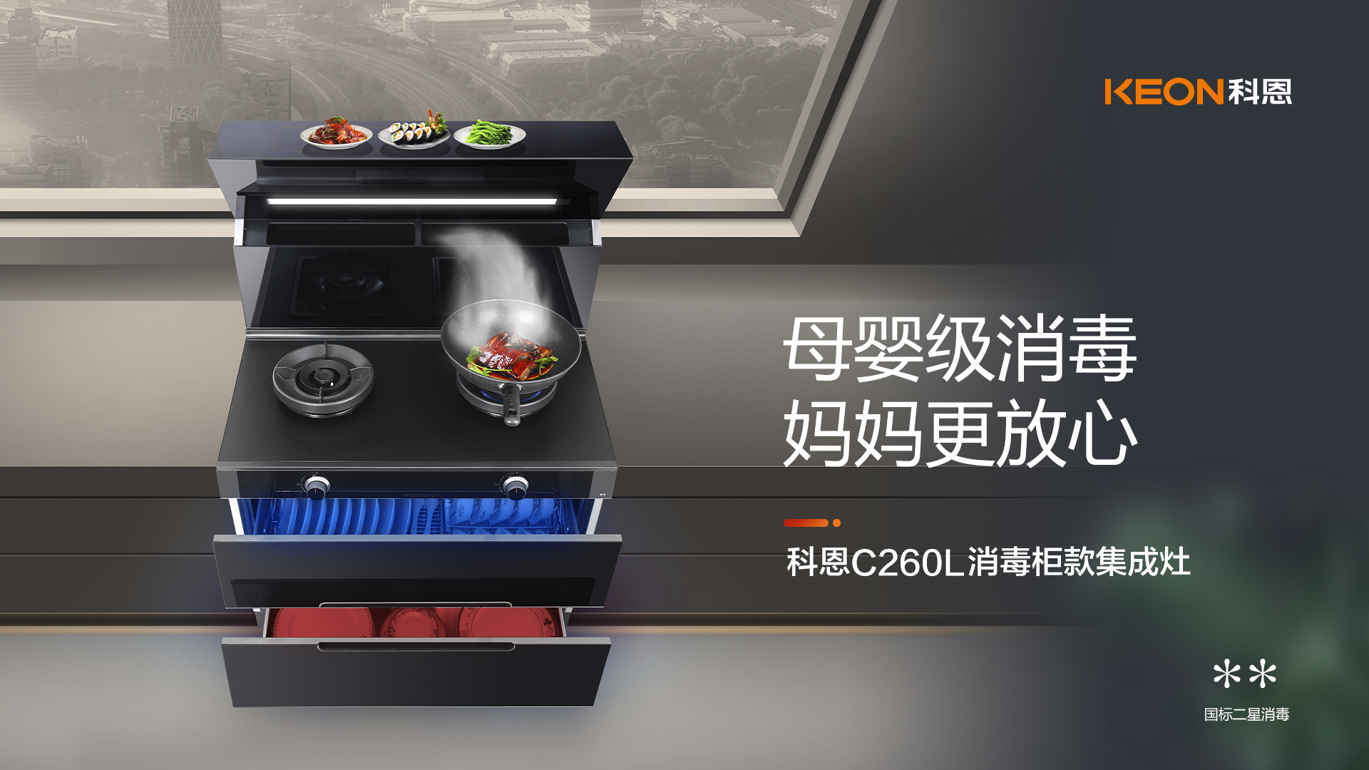 但市面上這么多的消毒柜款集成灶,怎么挑才能挑到最為合適的呢?科恩C260L傾城上市,國標(biāo)二星消毒柜,更專業(yè)、更安全!