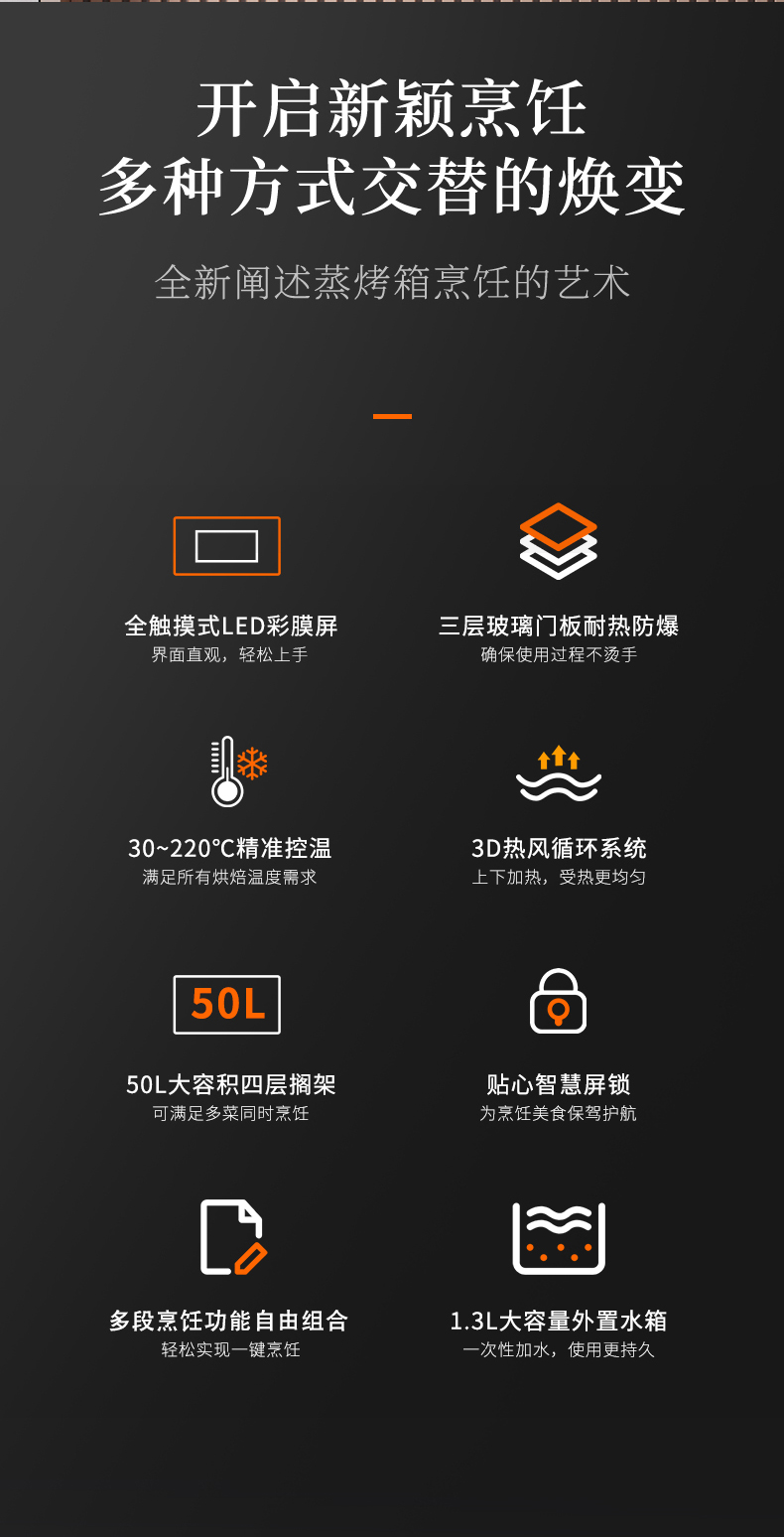 最后,科恩ZKZ06嵌入式蒸烤一體機(jī)擁有50L大容積四層擱架,可滿足多菜同時(shí)烹飪。