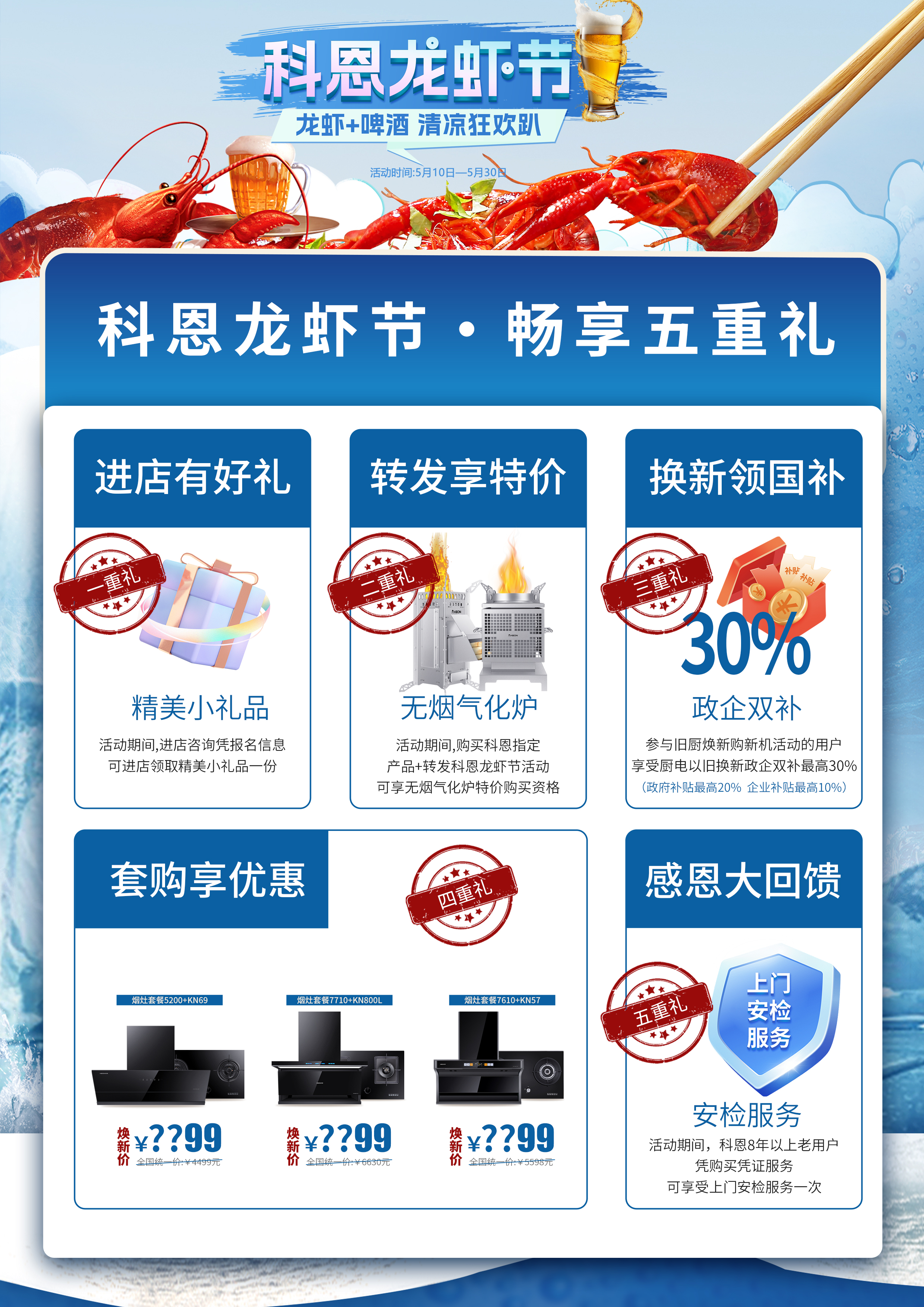 五月的風(fēng)裹著龍蝦的鮮香,廚房的煙火氣正醞釀著一場狂歡!作為家庭生活的核心,廚房早已不再是簡單的烹飪場所,而是承載著溫飽、社交與歡樂的“情感樞紐”。科恩電器重磅推出“科恩龍蝦節(jié)·龍蝦+啤酒清涼狂歡趴”,以美食為紐帶,用超值福利喚醒你的廚房升級欲望!