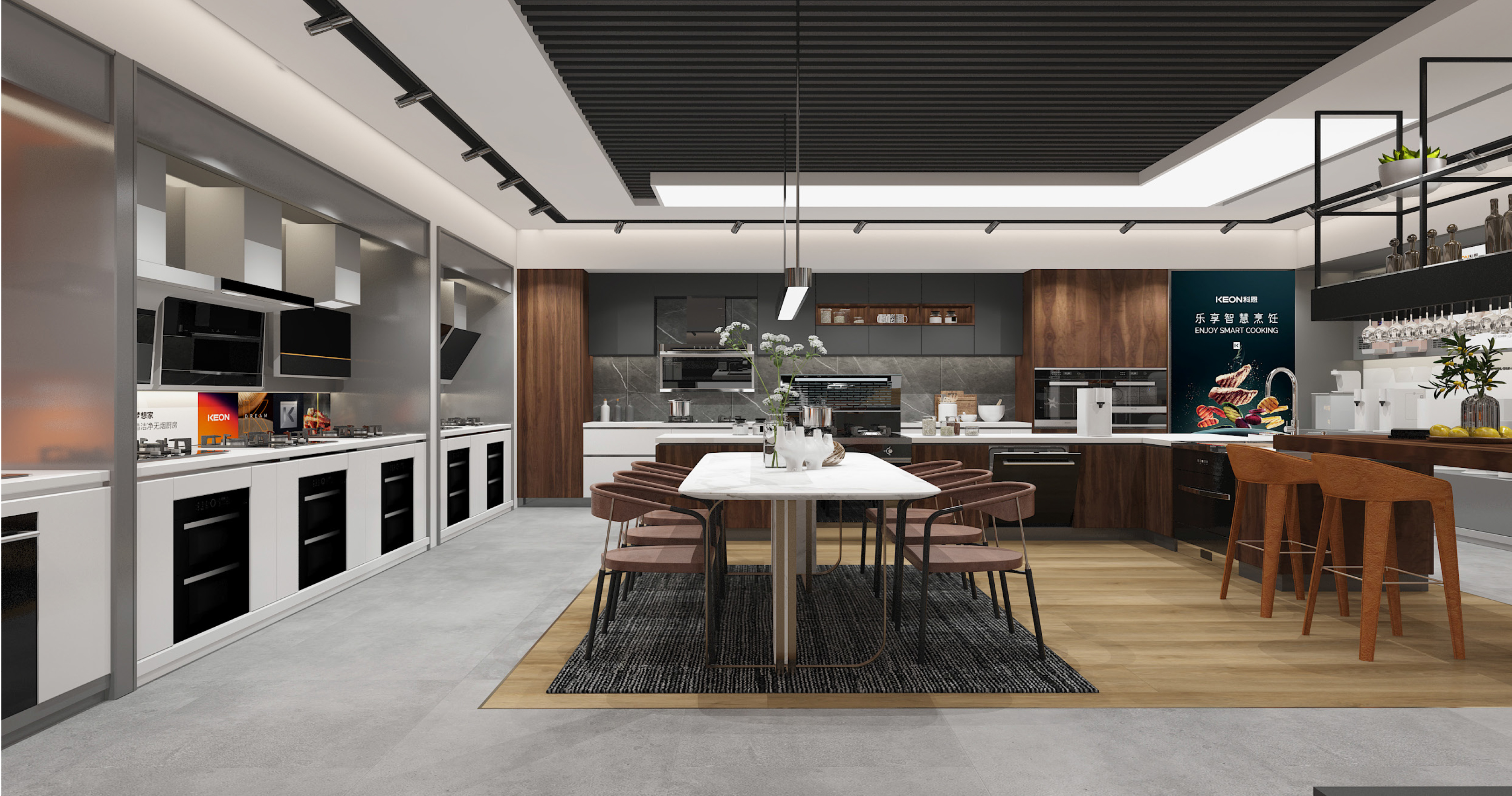 科恩始終以創(chuàng)新驅(qū)動(dòng)產(chǎn)品迭代,構(gòu)建覆蓋全廚房的產(chǎn)品體系。集成灶、油煙機(jī)、燃?xì)庠睢?/span>消毒柜、凈水器、集成烹飪中心等全品類廚電,搭載自主研發(fā)的專利技術(shù),兼具節(jié)能、環(huán)保、智能等優(yōu)勢,貼合現(xiàn)代家庭的烹飪需求。同時(shí),科恩突破傳統(tǒng)門店模式,通過模塊化設(shè)計(jì)將產(chǎn)品與開放式廚房場景融合,打造集展示、體驗(yàn)、社交于一體的新型終端。消費(fèi)者可沉浸式感受產(chǎn)品性能,門店則變身“廚房生活體驗(yàn)館”,有效提升成交率與用戶粘性。