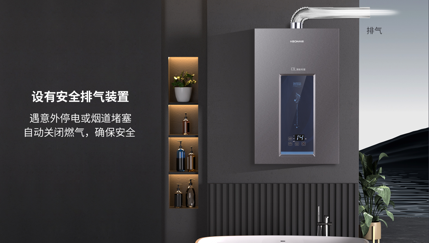 大屏顯格調(diào),纖薄省空間。高級灰曜色機身,自帶尊貴質(zhì)感,寬屏動態(tài)顯示屏,水溫水量一目了然,時尚纖薄設(shè)計,小戶型也能輕松安裝新舊家居風(fēng)格都能適配,顏值與科技并存。