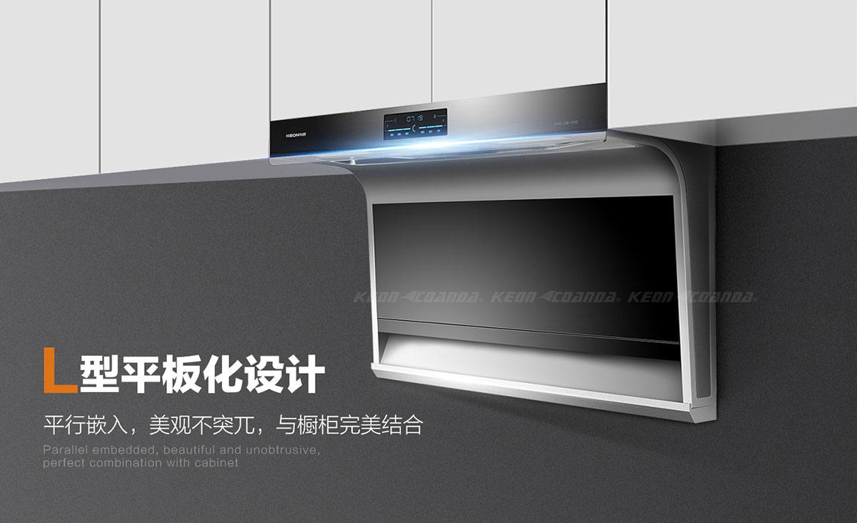 特創(chuàng)L型平板化隱形設計,平行嵌入,與櫥柜結合,美觀不突兀。