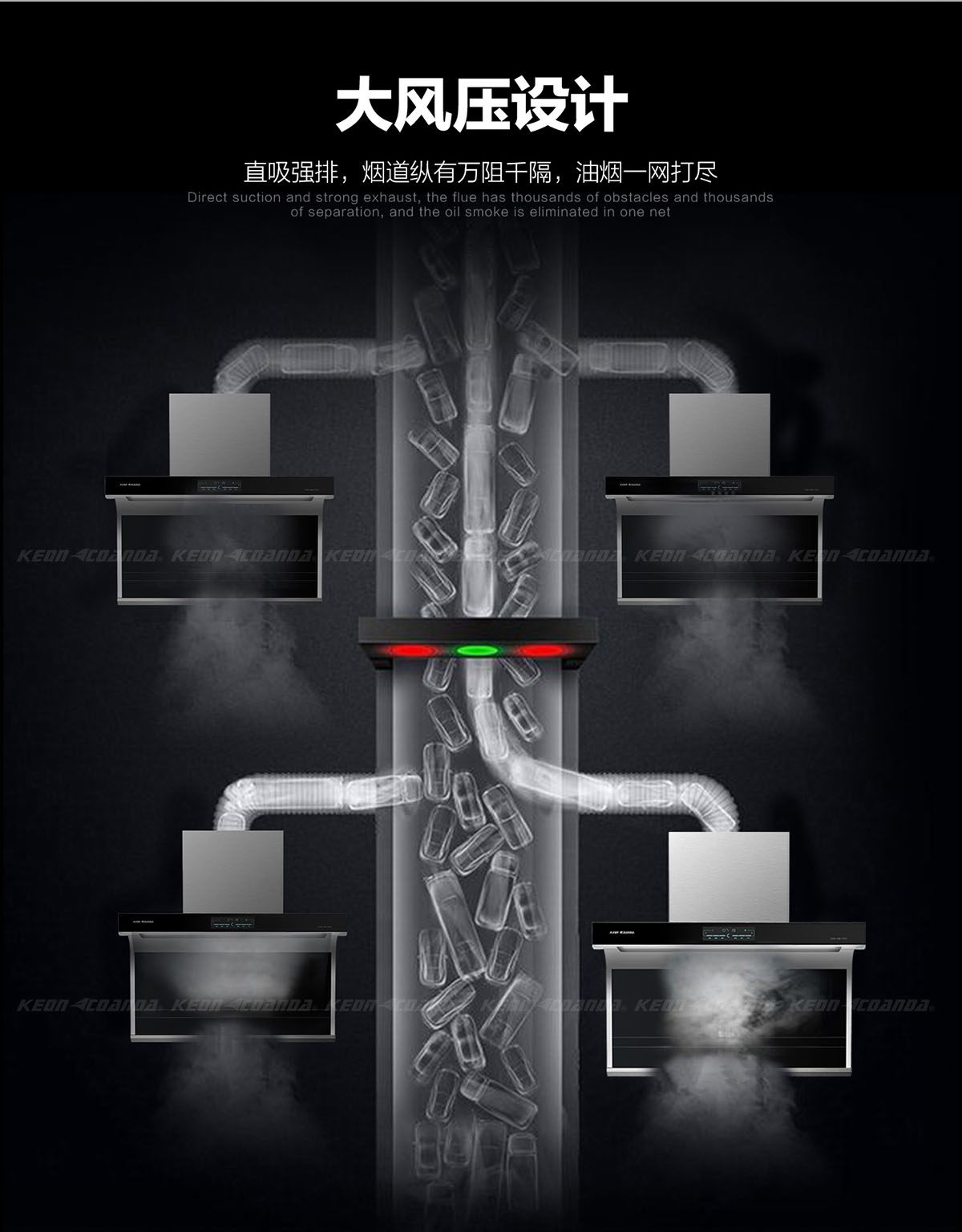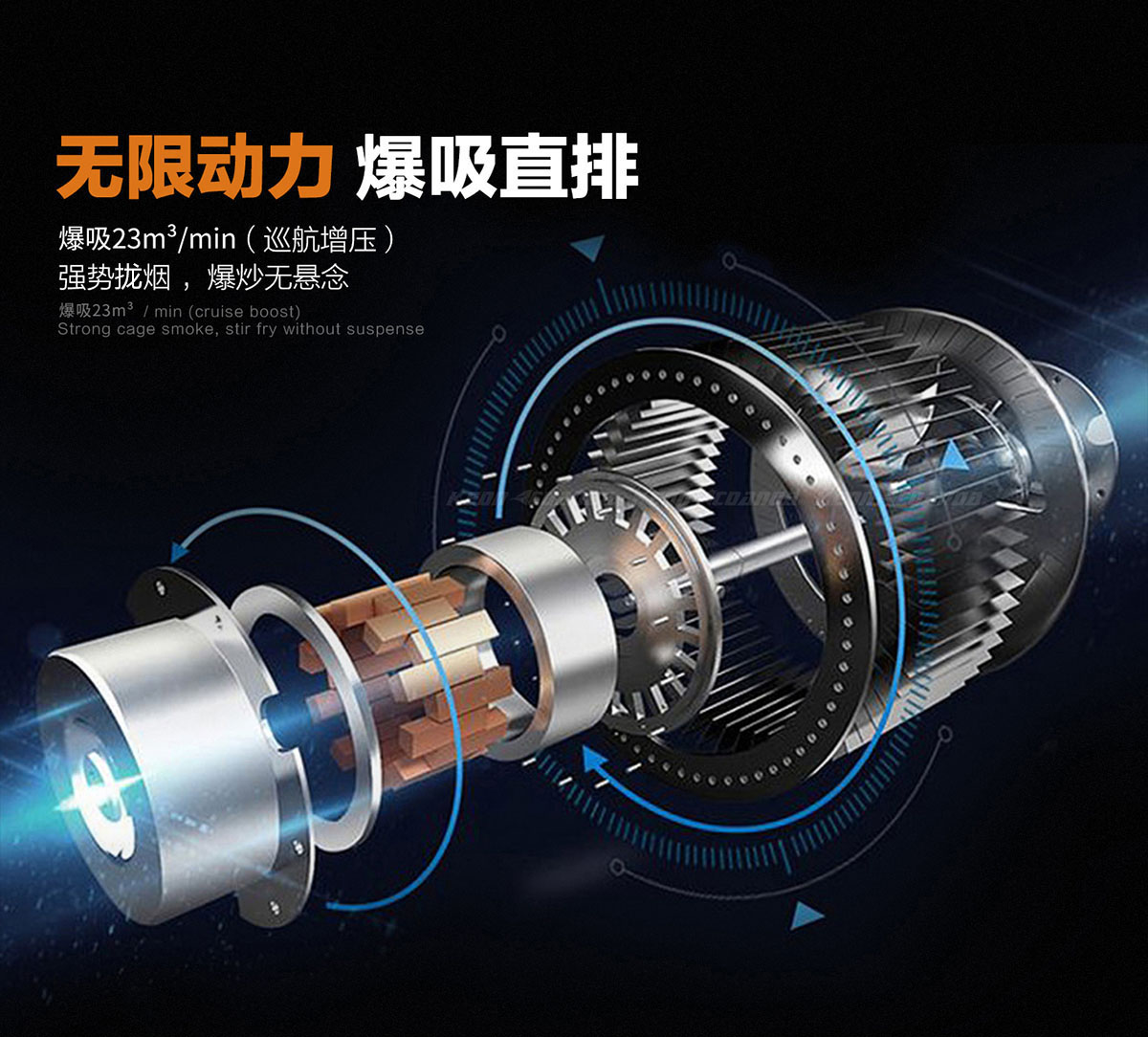 強勁風量,超攏煙區(qū),油煙不擴散。
