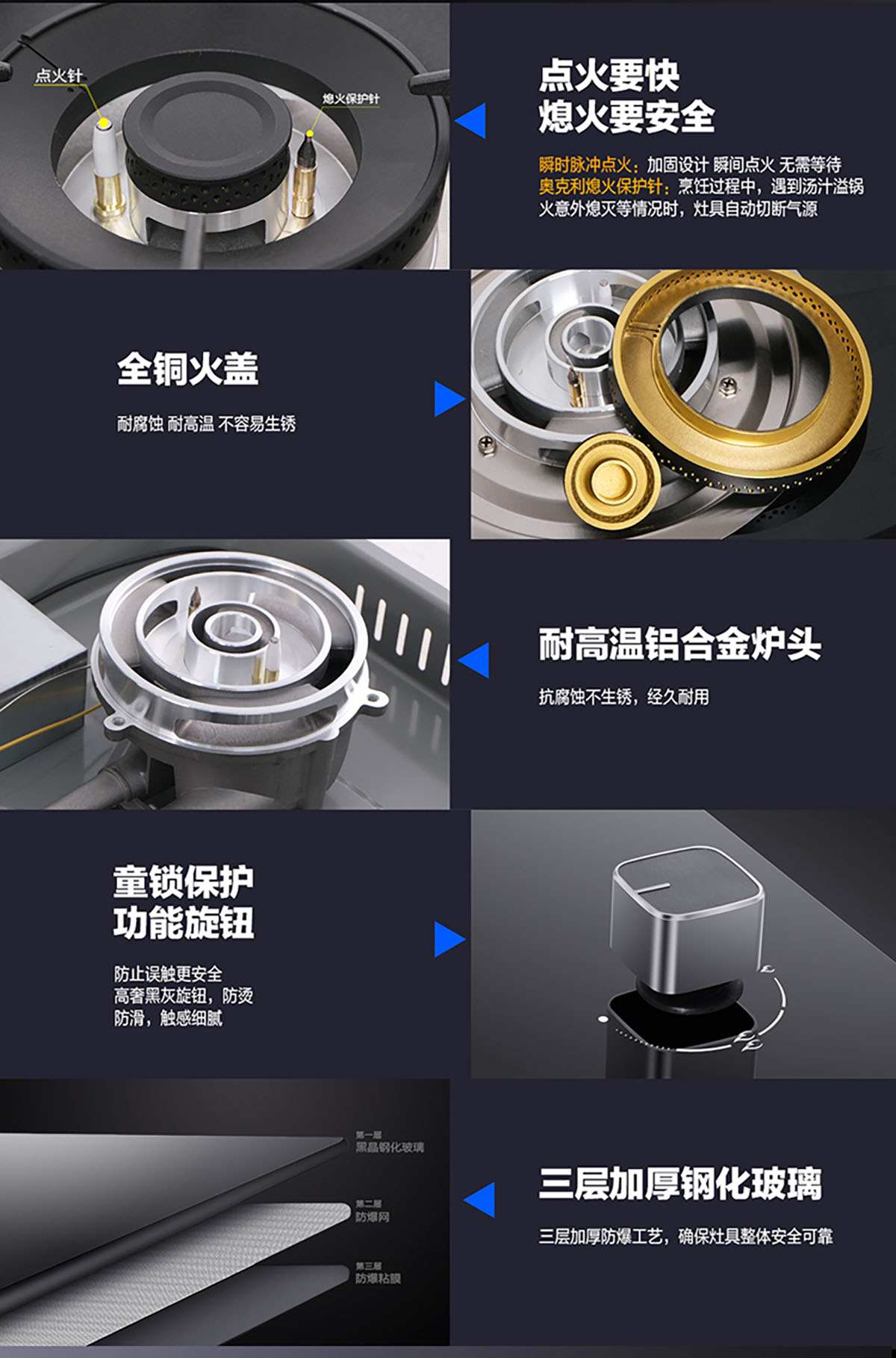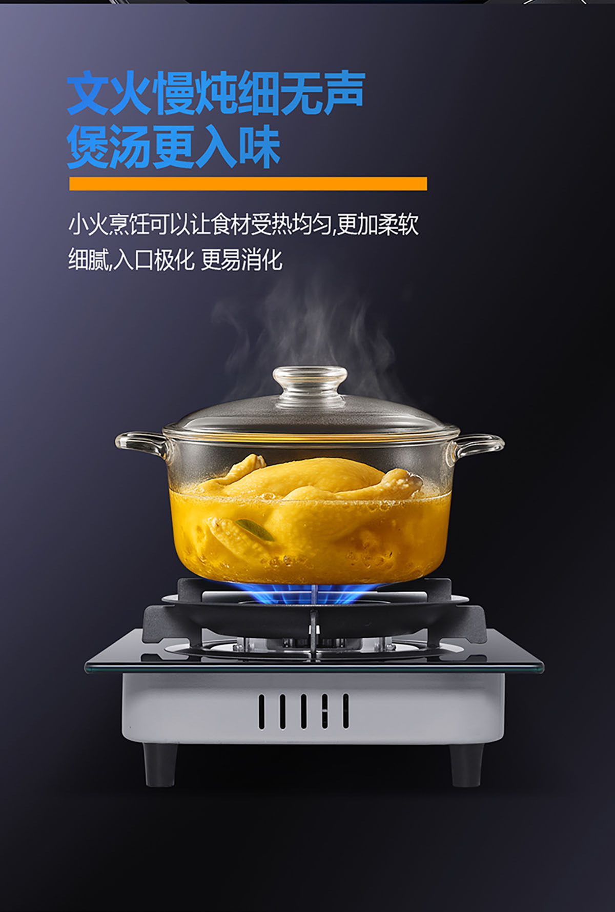 材 質(zhì):玻璃面板、達克羅無瓷化工藝爐頭、搪瓷鍋架