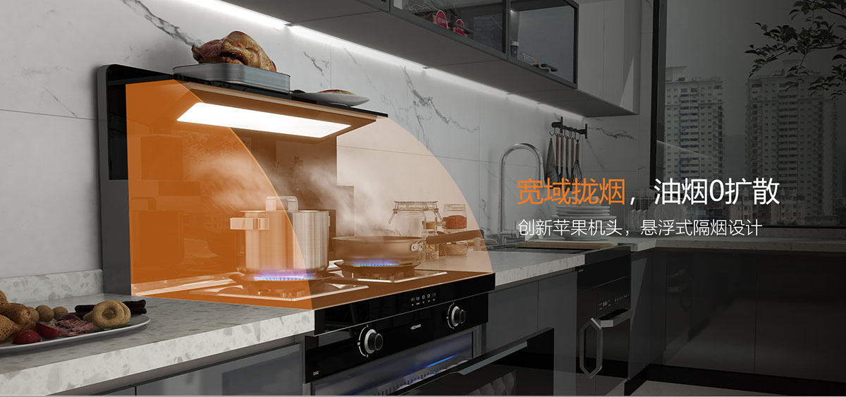 懸浮式隔煙設(shè)計,寬域攏煙,油煙0擴散
