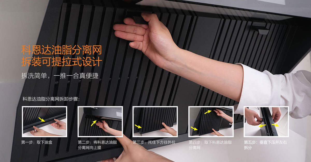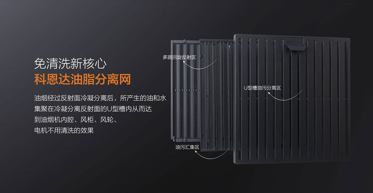 科恩達油脂分離網(wǎng)便捷拆裝設計,表面易潔工藝,拆洗簡單