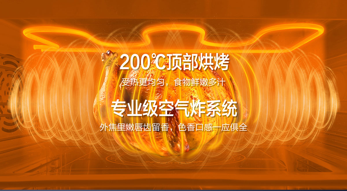 200℃頂部烘烤,受熱更均勻,食物鮮嫩多汁