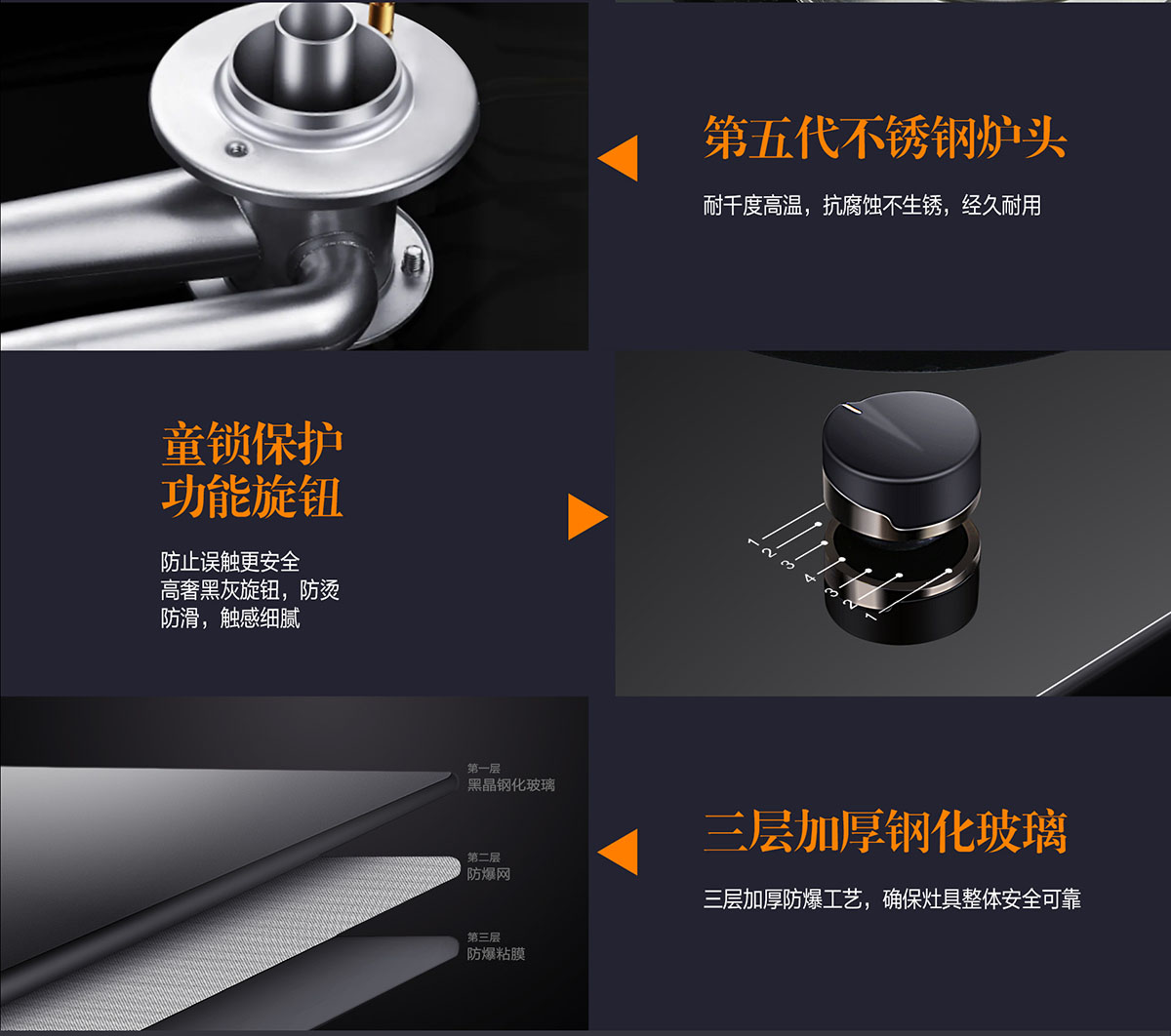氣 源:天然氣+人工燃?xì)?液化氣材 質(zhì):防爆鋼化玻璃面板、一氣一電灶具、猛火直噴