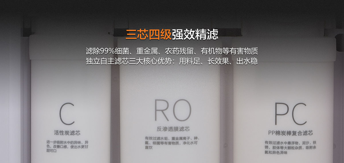 - 三芯四級強(qiáng)效精濾,濾除99%細(xì)菌重金屬