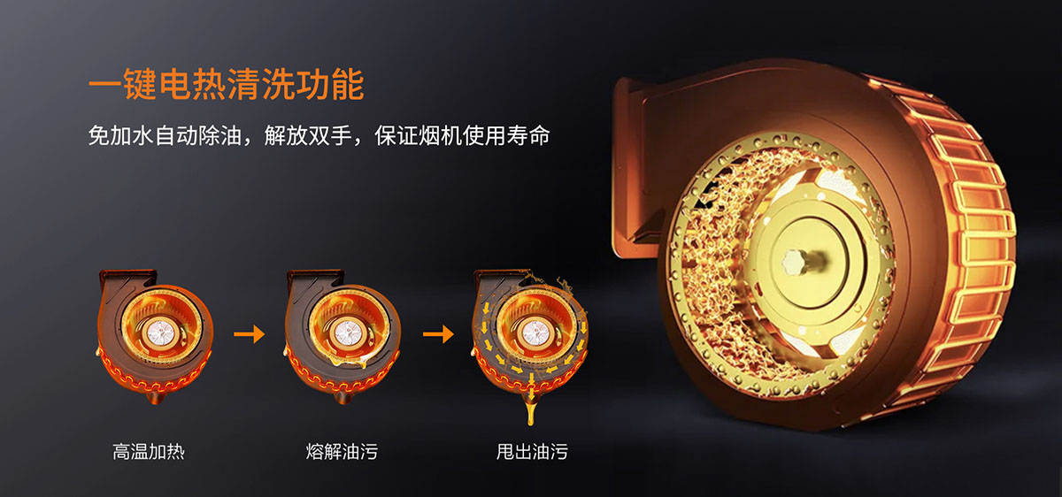 一鍵電熱清洗功能,解放雙手,保證煙機(jī)使用壽命