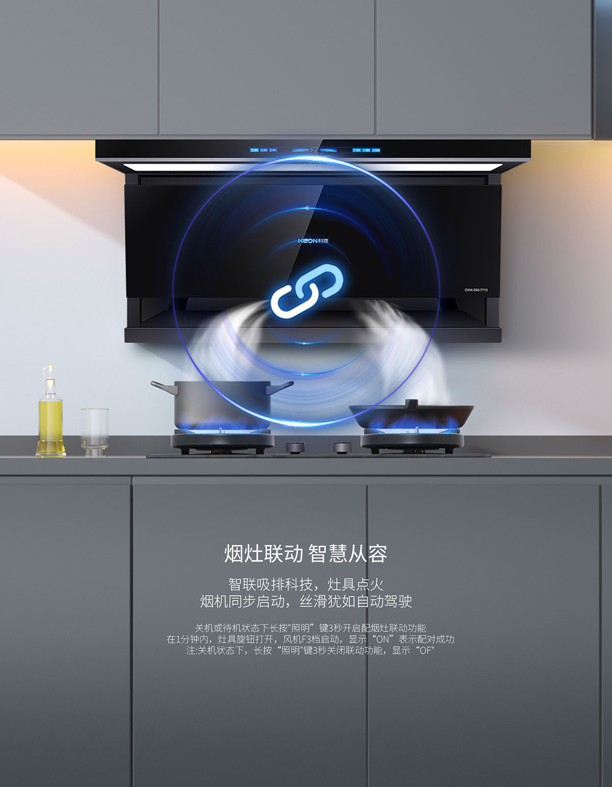 煙灶聯(lián)動(dòng), 智慧從容,智聯(lián)吸排科技