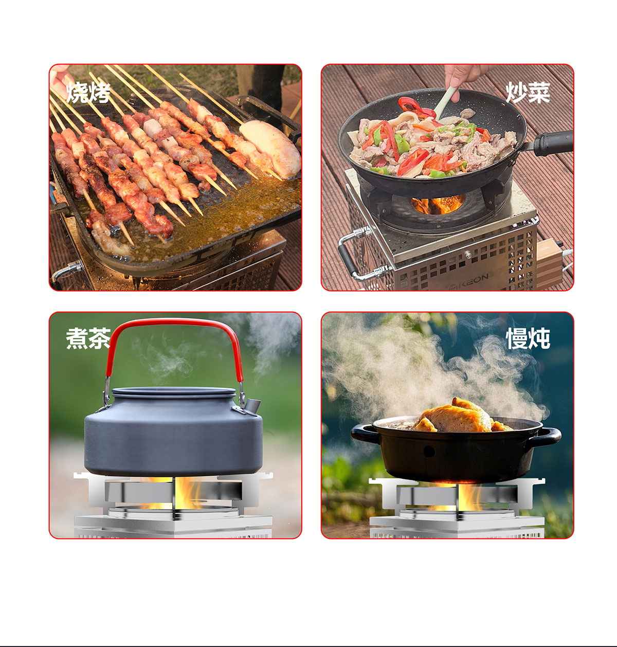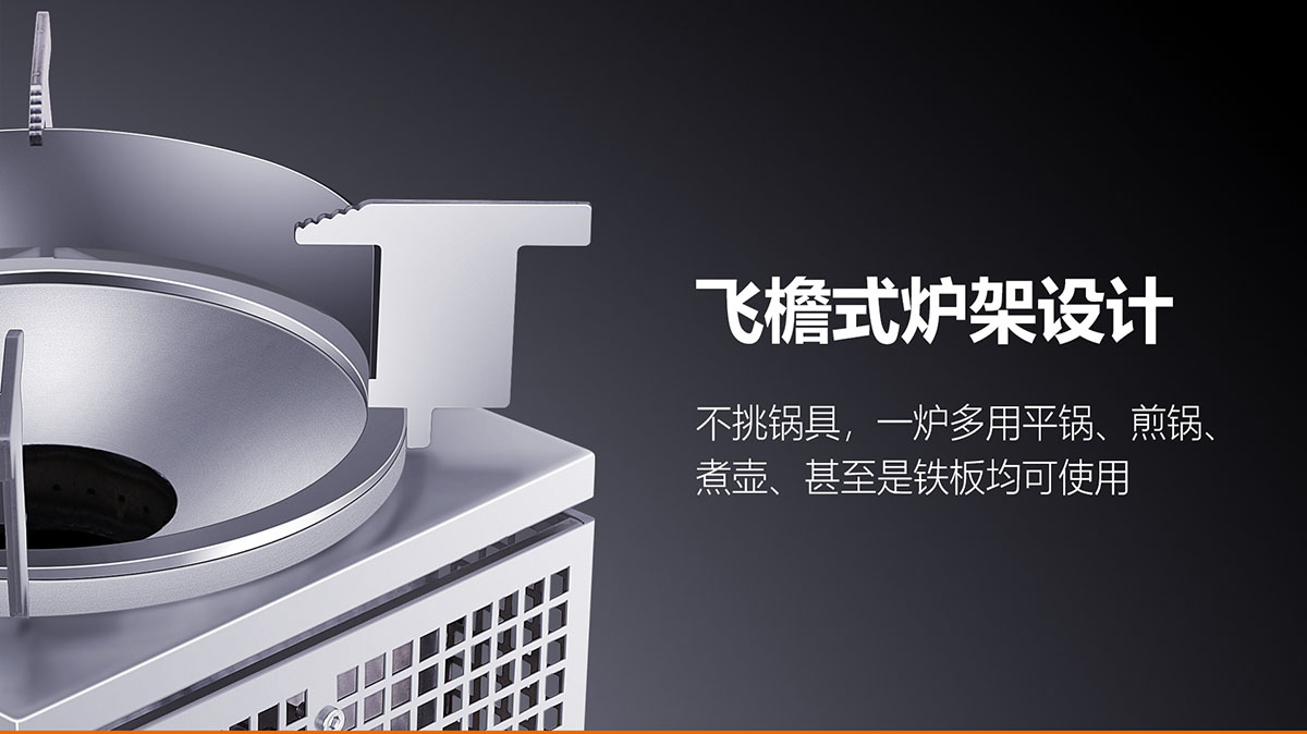 - 飛檐式防滑鍋架,堅固耐用,聚熱安全
