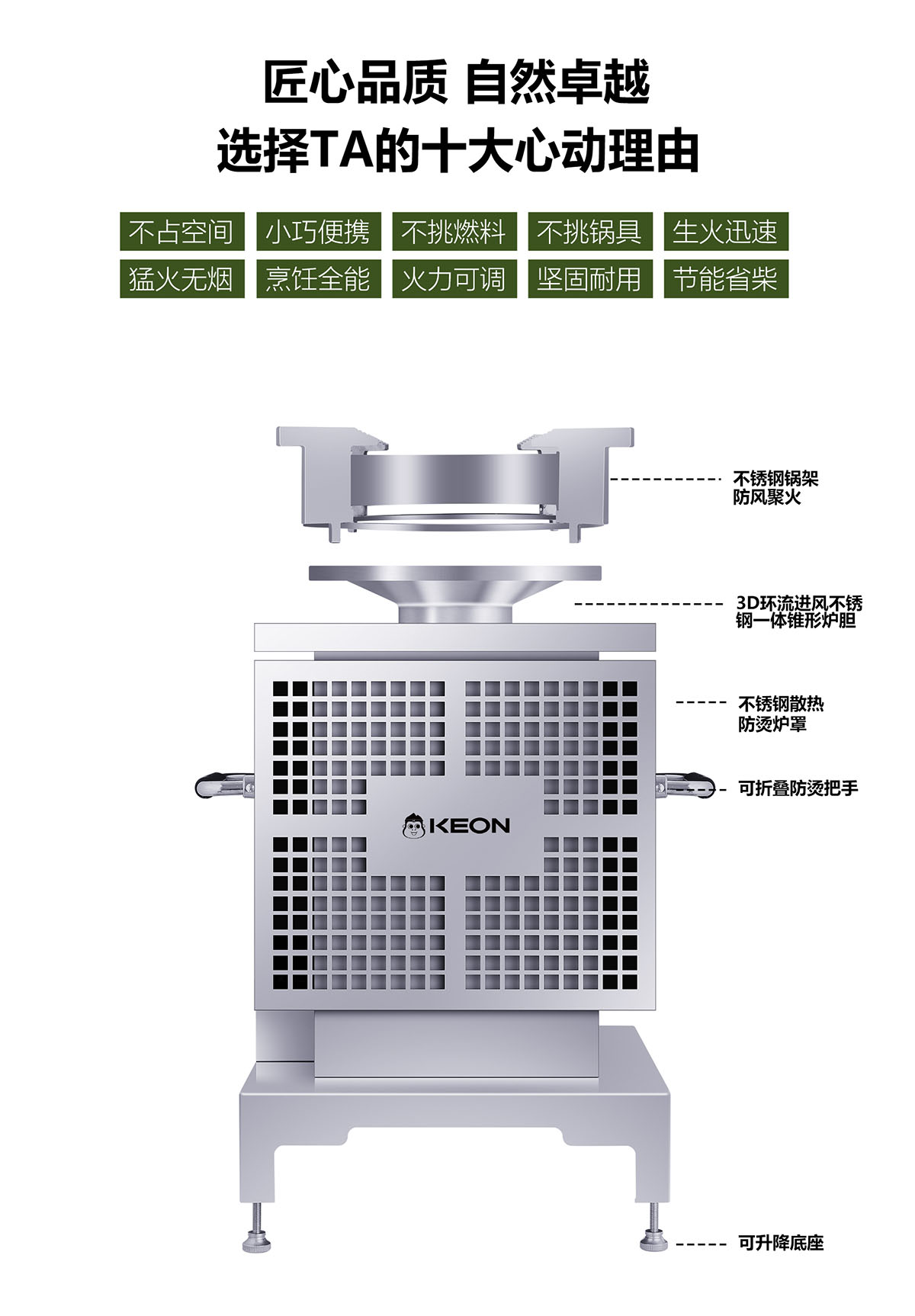 - 3D繞流爐膛,科學供氧,猛火無煙