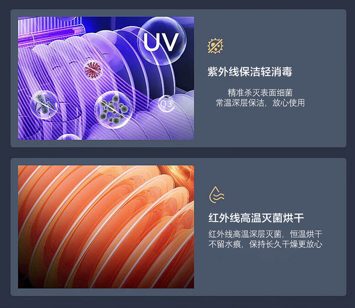 殺菌方式:紫外線+臭氧+烘干+高溫