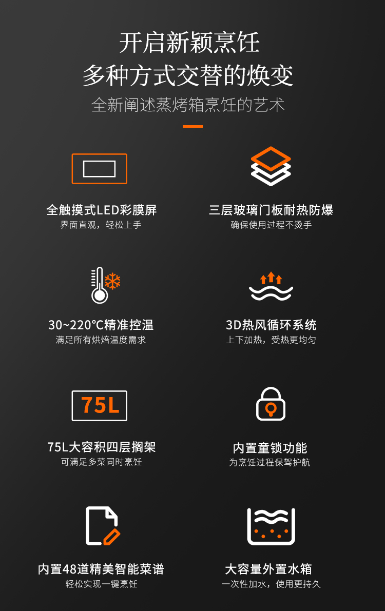 75L大容量,可滿足多菜同時烹飪