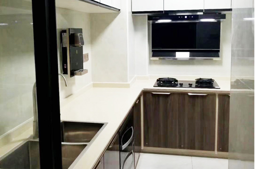 科恩廣東經(jīng)銷商提供的煙機(jī)、燃?xì)庠詈筒讳P鋼水槽廚房實景