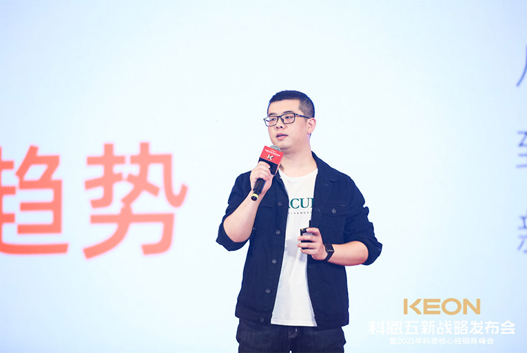 這一切成功的背后,除了有一支優(yōu)秀的鐵血團(tuán)隊(duì),還有各地經(jīng)銷商家人的支持陪伴,更重要的是有一位領(lǐng)航人不斷地探索。科恩電器董事長(zhǎng)俞鋒上臺(tái)致辭,宣布峰會(huì)正式開(kāi)始,“打造新科恩、重塑新科恩,再創(chuàng)科恩黃金十年”這一堅(jiān)定目標(biāo)和信念,伴隨洪亮的嗓音響徹全場(chǎng)。