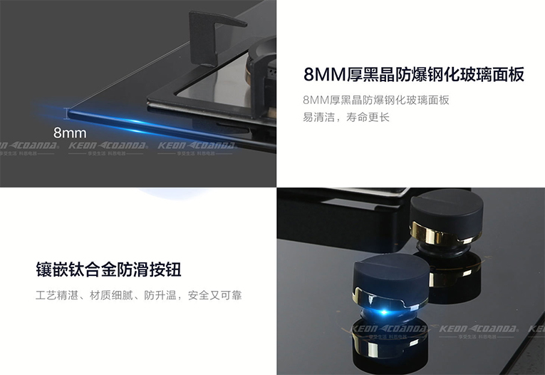 中國(guó)人爆炒除了爆炒外,還有煎、炸、燜、煮、燉、蒸等各式烹飪技法,不同的烹飪方式對(duì)火力的要求也各不同,集成灶十大品牌、廚電行業(yè)十大品牌科恩智能防干燒灶具KN610采用鑲嵌鈦合金防滑按鈕,精準(zhǔn)火力調(diào)節(jié),大火猛,小火穩(wěn),滿足了不同烹飪方式對(duì)火力的不同需求,讓你盡情釋放美食創(chuàng)造力。