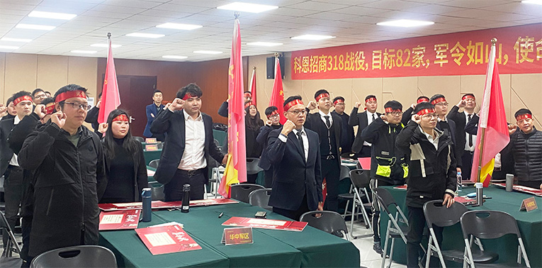 總指揮錢(qián)昌敏帶領(lǐng)公司各領(lǐng)導(dǎo)、各戰(zhàn)區(qū)作動(dòng)員講話(huà),并制定了本次招商峰會(huì)的戰(zhàn)略方向和執(zhí)行策略,提出作戰(zhàn)目標(biāo),希望每位科恩人能夠以百分百的狀態(tài)投入工作,以堅(jiān)持不懈的精神砥礪前行??贫骷稍钤谌珖?guó)擁有近3000家專(zhuān)賣(mài)店,相信在大家的不懈奮斗下,將全力沖刺2022!