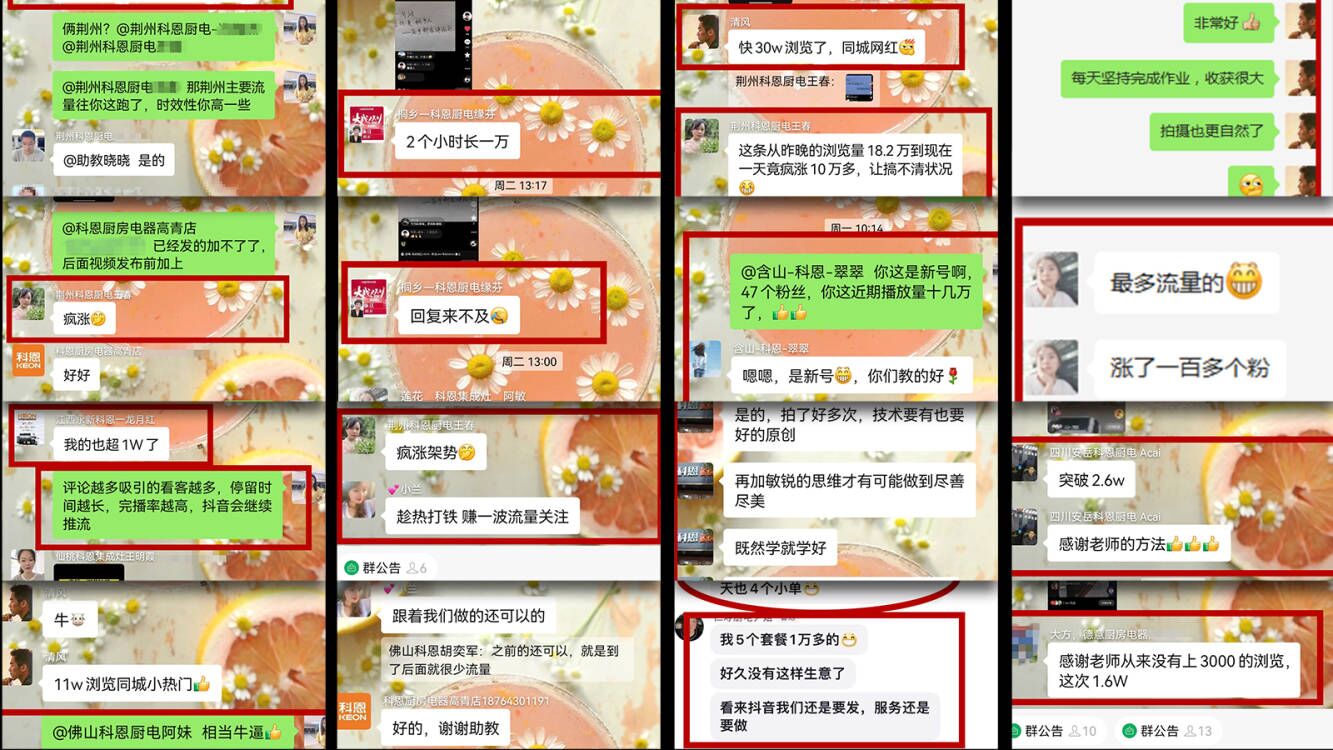 近日,科恩電器創(chuàng)辦的抖音實戰(zhàn)培訓班(第三期初級班、第一期高級班)已順利結業(yè),近600名培訓學員,涵蓋了廚電衛(wèi)浴、全屋定制、環(huán)保凈水、石材涂料、櫥柜五金等家居建材行業(yè),他們當中有抖音小白、資深網(wǎng)紅、業(yè)界大咖、更有知名同行友商,在通過系統(tǒng)專業(yè)的抖音實戰(zhàn)培訓之后,破萬播放量已成日常,數(shù)據(jù)反饋不斷創(chuàng)造歷史新高,更有40W+高播放率、百萬抖音熱門紛至沓來!