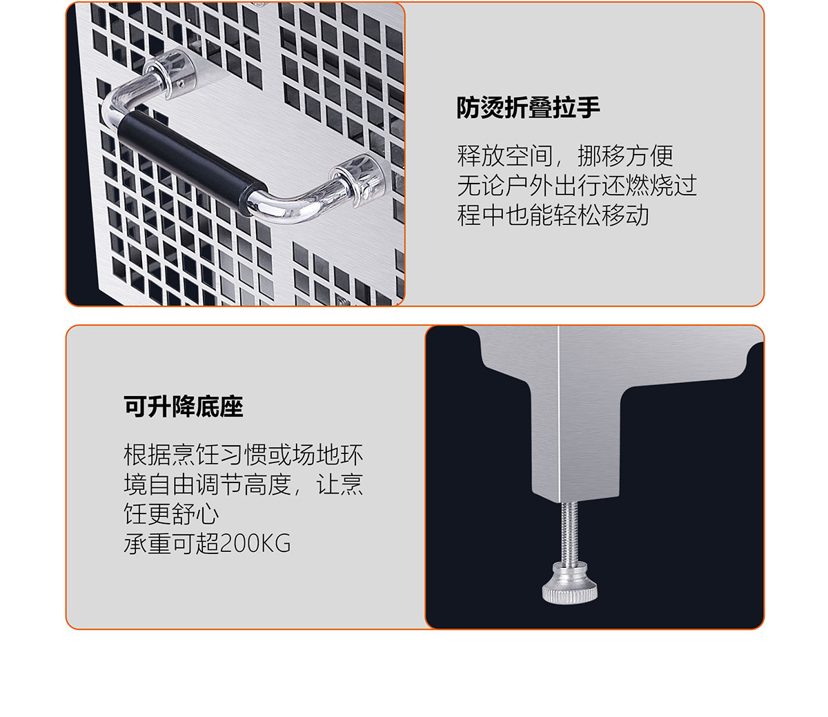 - 折疊式防燙把手,釋放空間,移動方便